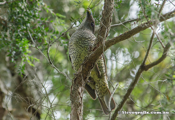 This is a female Satin Bowerbird, the male who is black (hence the name) eluded me on the day, Jiliby, Dec 2017.