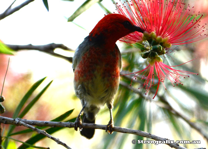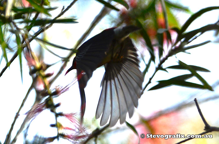 Male Scarlet Honeyeater flying at Newcastle Wetlands Sept 2013.